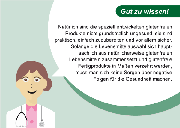 Um die lebensmitteltechnologischen Eigenschaften von Gluten zu ersetzen und den Geschmack zu verbessern, wird industriell hergestellten, glutenfreien Produkten häufig mehr Fett und Zucker hinzugefügt als üblich. Dadurch erhöht sich auch der Energiegehalt glutenfreier Backwaren und anderer Fertigprodukte. Ein gelegentlicher Verzehr ist unbedenklich. Doch wenn solche glutenfreien Lebensmittel häufiger auf dem Speiseplan stehen, erhöht sich nicht nur die Aufnahme von Zucker und Fett (vor allem ungünstiger gesättigter Fettsäuren), sondern auch die Kalorienzufuhr und damit das Risiko für Übergewicht.